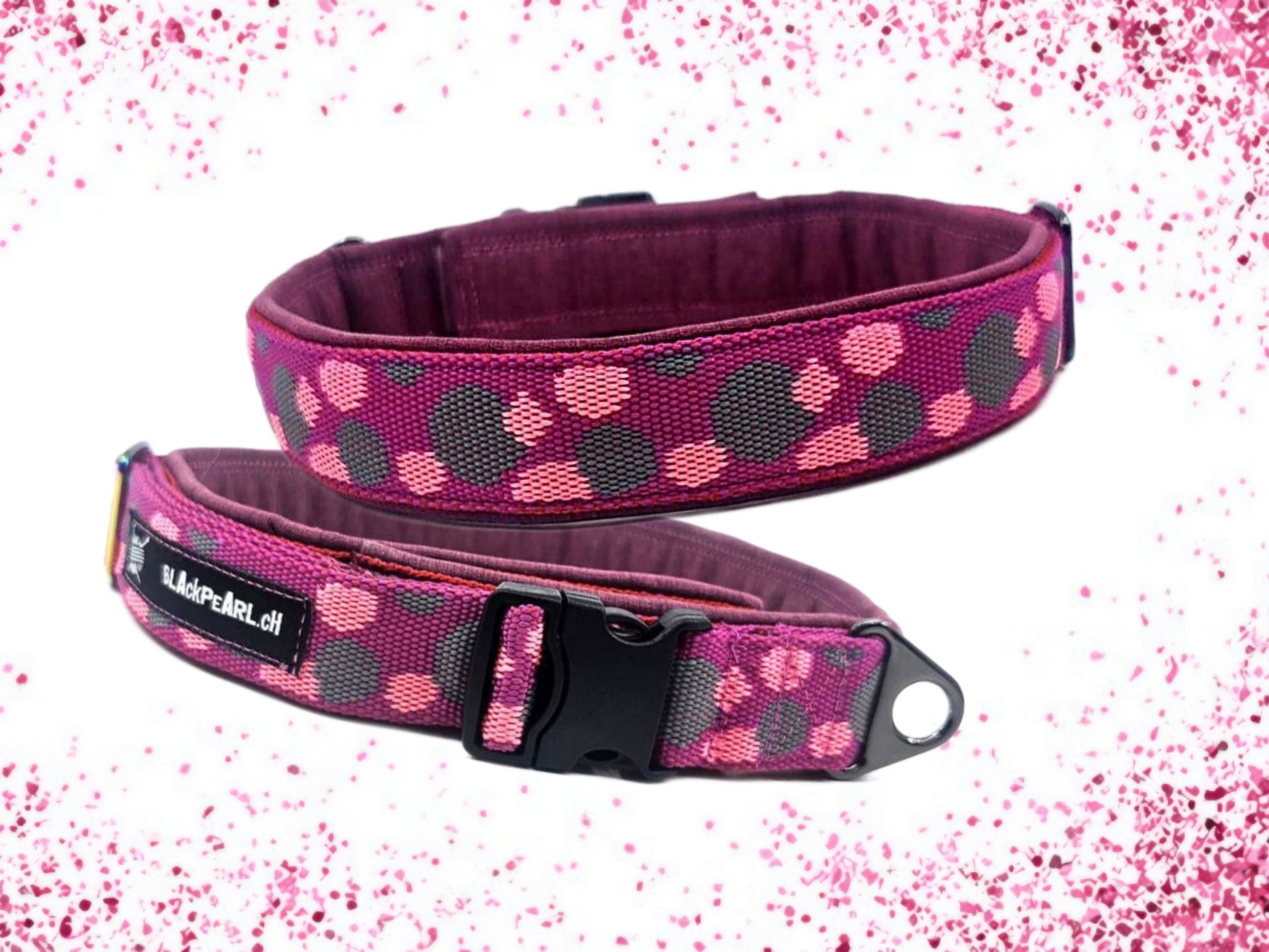 Das auffällige, Design mit kontrastierenden Punkten auf dem Gurtband sorgt für gute Laune – bei Hund & Mensch. Dank weicher Softshell-Polsterung sitzt es besonders bequem und schont das Fell deines Lieblings.
