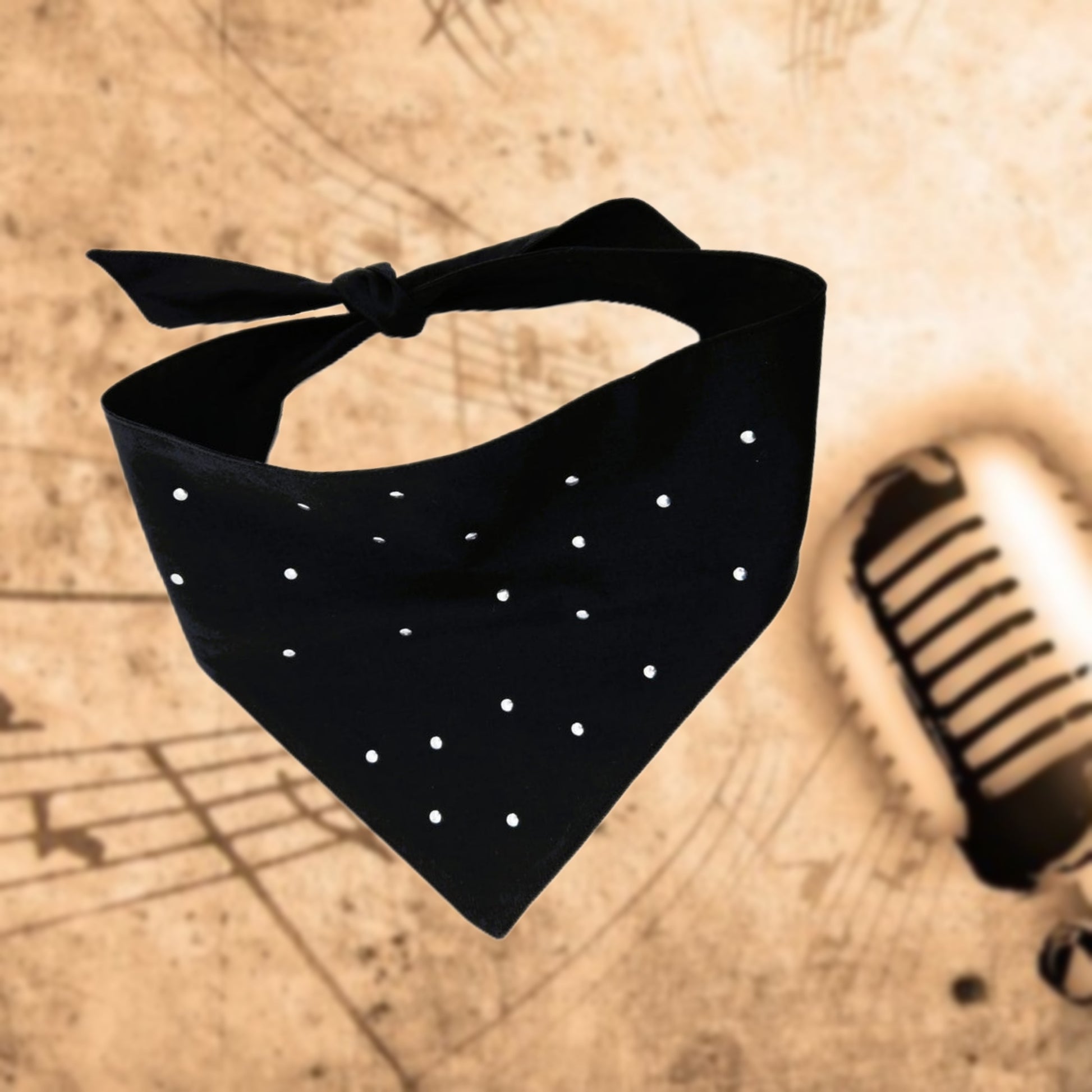 Dieses tiefschwarze Hundehalstuch mit silberfarbenen Nieten verleiht deinem Vierbeiner einen coolen, rebellischen Look. Ideal für grössere Hunde mit Stil – handmade, hochwertig & auffällig! 🐕🤘
