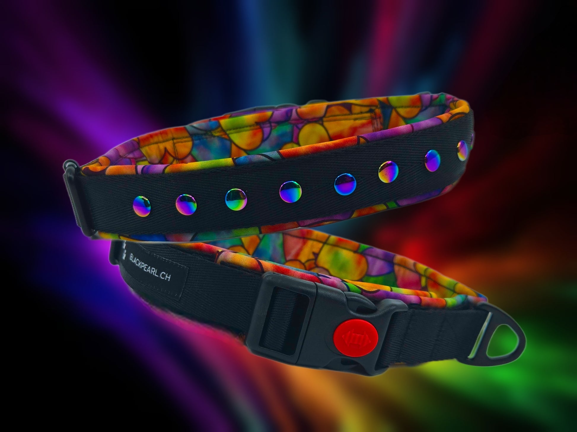 Bunt, frech und ein echter Hingucker – das Halsband FLIP FLOP überzeugt mit 10 farbigen Nieten im fröhlichen Flip-Flop-Look. Die weiche Softshell-Polsterung sorgt für angenehmen Tragekomfort.