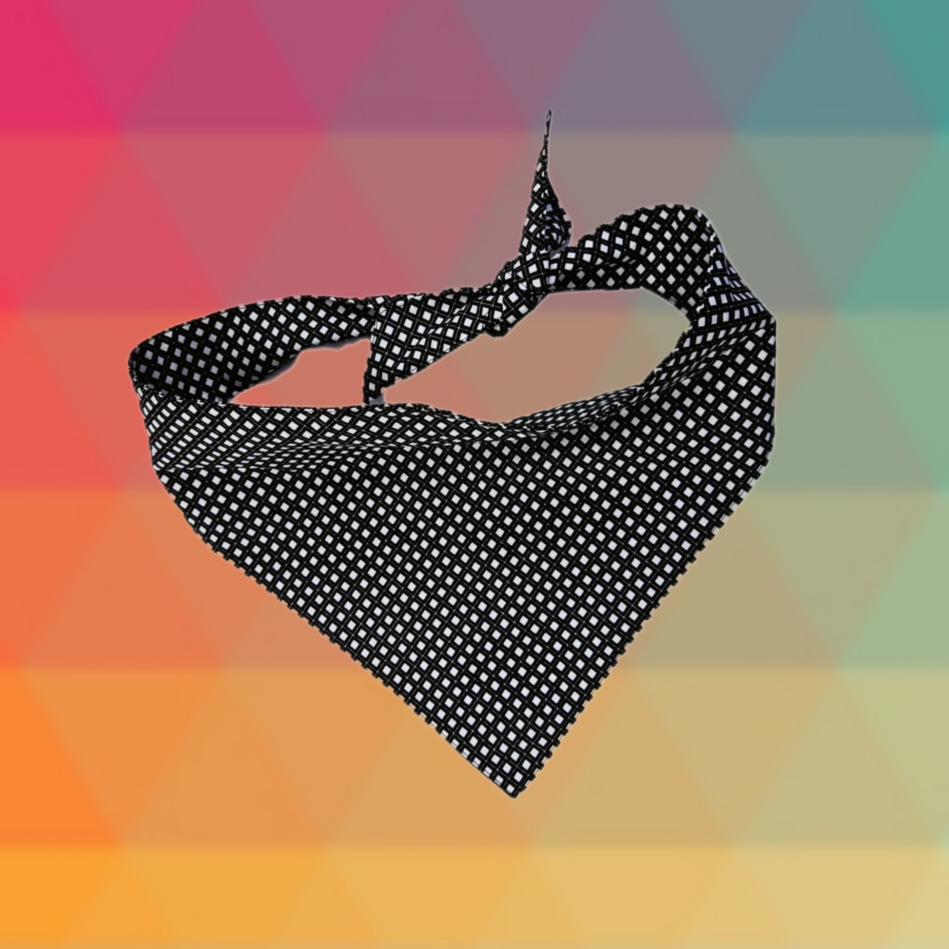Hundehalstuch in Schwarz-Weiss mit geometrischem Muster.