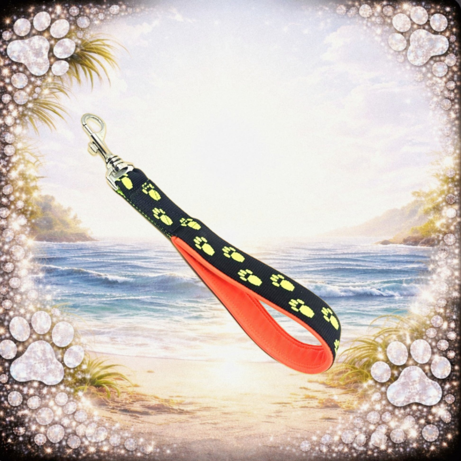 Stylisch auffallen und dabei volle Kontrolle behalten? Kein Problem mit diesem Kurzführer in Schwarz mit knalligen Pfoten und orangem Softshell-Griff. Super angenehm in der Hand und ideal, um deinen Hund schnell und sicher zu führen, wenn’s mal hektisch wird.