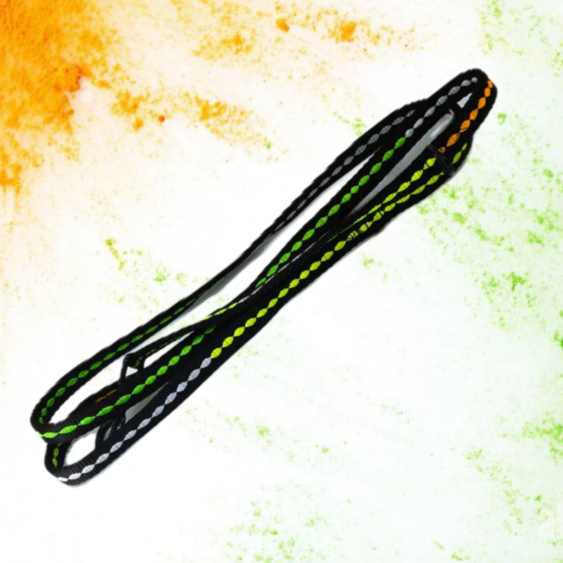 🌈 Design: schwarzes Gurtband mit Neon-Zierstich (Weiss, Grün, Orange & Gelb im Wechsel)